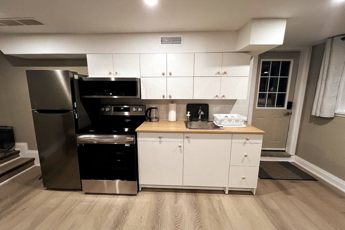 開車4分鐘即可抵達彼得伯勒醫院、藝術畫廊、Cineplex Odeon、市中心餐廳區和蘭斯當街,附近有LCBO、超市、連鎖餐廳和星巴克! 設備齊全的廚房,讓你輕鬆準備美食盛宴。 在水晶吊燈下啜飲葡萄酒,或蜷縮在沙發上觀看Netflix電影。 享用大型隱形床。 適合情侶、獨遊冒險家和商務旅客的度假勝地。 最多2人 一張大雙人牀 房源內禁止吸煙 車道上有一個停車位