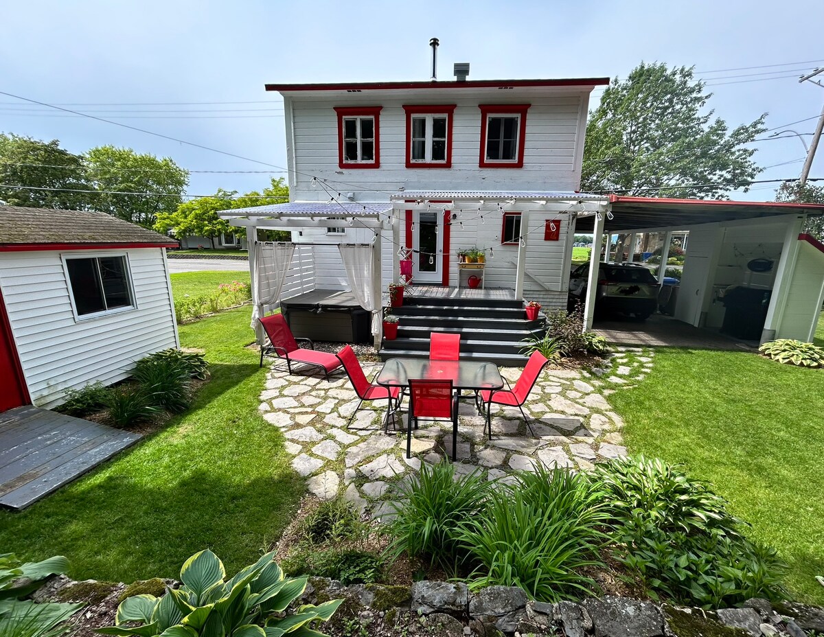 溫馨的祖傳房屋,有 5 間臥室(幾乎 6 間)和 5 間浴室,位置獨特,面向河流和碼頭。每個房間都有熱泵。距離餐廳和商店僅幾步之遙。高速 WiFi。在海灘上享受風箏、帆船、立式滑板、皮艇和自行車,或在這個寧靜的天堂中放鬆身心!可接待更大的團體和活動,請聯絡我了解費用和細節。 CITQ : 103946