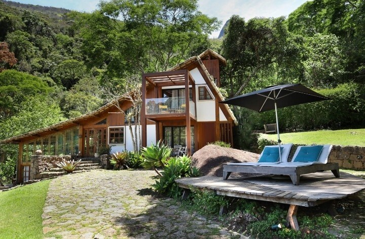 坐落在一個小公寓與3所房子。 總面積14 000平方米和10000平方米的大西洋森林。 河流和天然遊泳池。 瀑布就在對面。房子通過玻璃牆與自然相連。