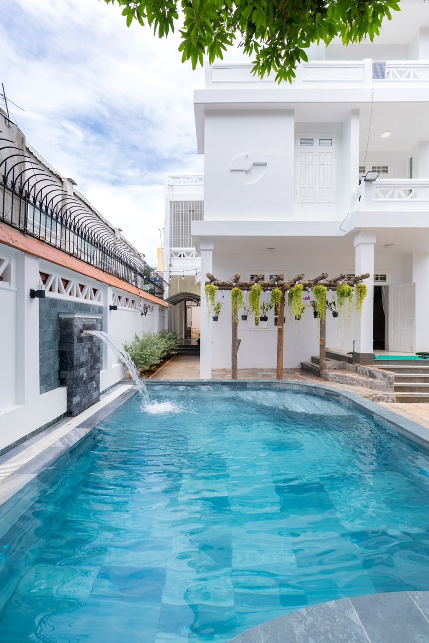 當您的家人入住這個位於市中心的房源時,可以去任何地方。 Mai House新開業1/2025美麗的現代設計,相對功能齊全 ✅5間臥室- 7張牀+ ( 4張額外牀墊) - 6張衛星 3樓的街頭✅房屋1個地面可容納15 - 25K ✅前往海灘、越南市場900公尺( 5分鐘車程) ✅ 有30平方公尺的室內泳池,有電梯 燒烤✅廚房和基本廚房設備、洗衣機…… 房源附近✅有停車位 Add: E6 to Thai Van Lung Street, Ward 2, Vung Tau City.
