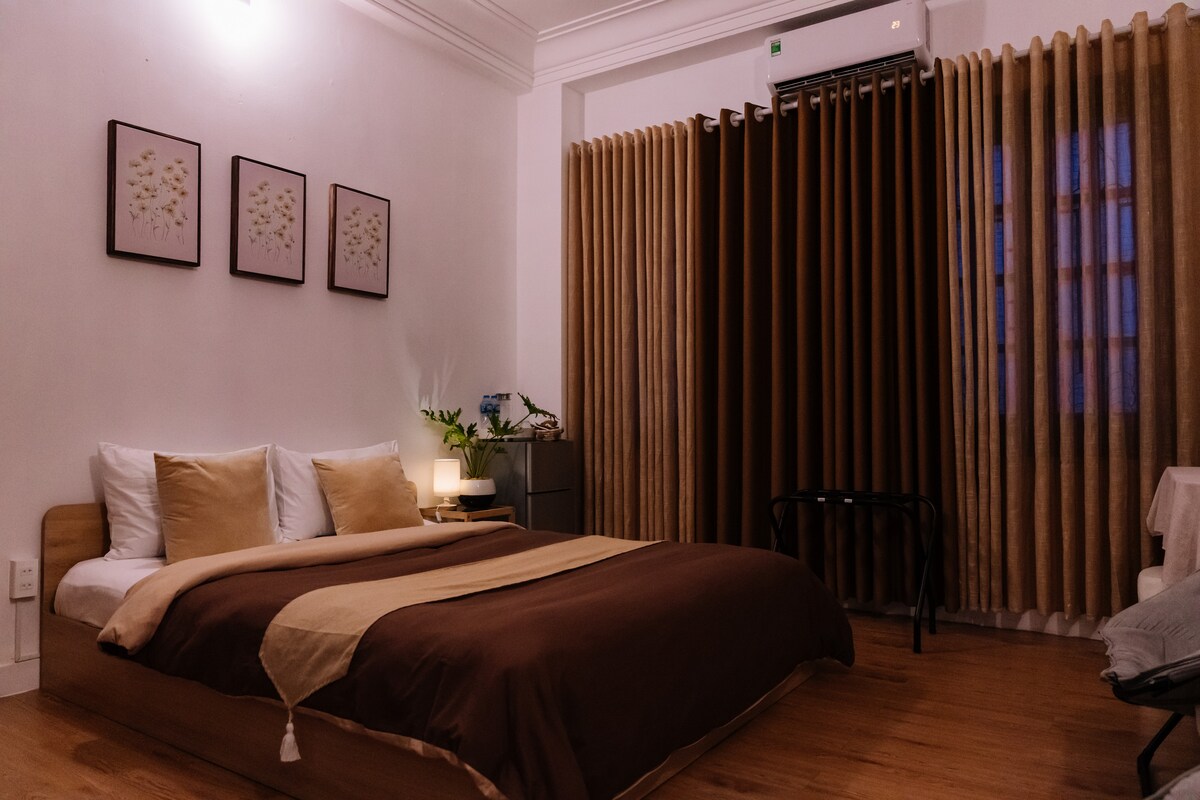 設備齊全的 34 平方公尺單間公寓,配有陽臺 1 張特大床,配有舒適的 Dunlopillo 床墊。 私人廚房、浴室、冰箱、電視和其他商品。 戶外花園 房東會說英文、越南語,網速120 Mbps。 地點方便 距離主幹道10公尺 從機場、火車站、聖母院搭乘計程車15分鐘。 距離市中心的Ben Thanh市場20分鐘。 距離白宮、Adora等會議中心5分鐘 步行即可抵達市場、商店、餐廳...