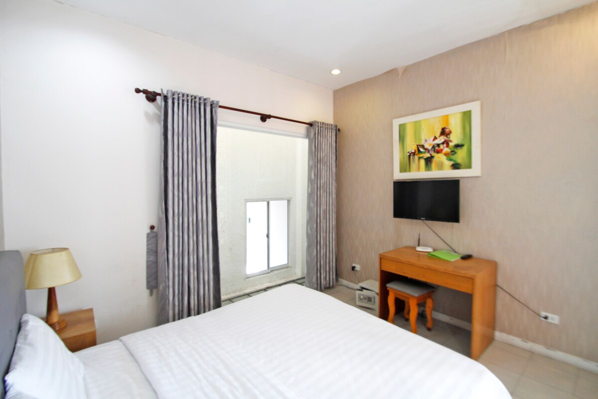 The property is 5 minutes away from the International Airport and 20 minutes away from city centre. It would cost you US$ 3-4 to get to city centre by Grab The building is a rennovated hotel building with 2 separate wings, a backyard and rooftop area. There will always be staff and myself to attend your needs. Why staying with us? - Ideal location - Balcony - Rooftop Area - Fully equipped with queen bed, private bathroom & kitchen area. - High speed Wifi