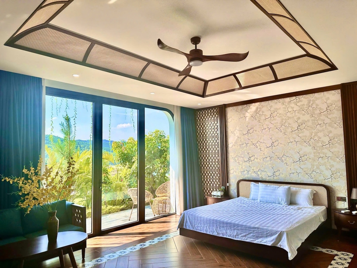 The villa is located 35km from the center of Hanoi and only 13km from Noi Bai International Airport. (Pets allowed) 👉🏻 Free Pickleball, swimming pool 👉🏻 Assistance with booking shuttle service ☘️ There is a super chill cafe with mountain views near the villa 🌸 Surrounded by lush greenery and romantic pine hills, with a vast 10,000 m2 space. The air is incredibly fresh and clean. You will be delighted and satisfied with the space and the attentive, enthusiastic service.