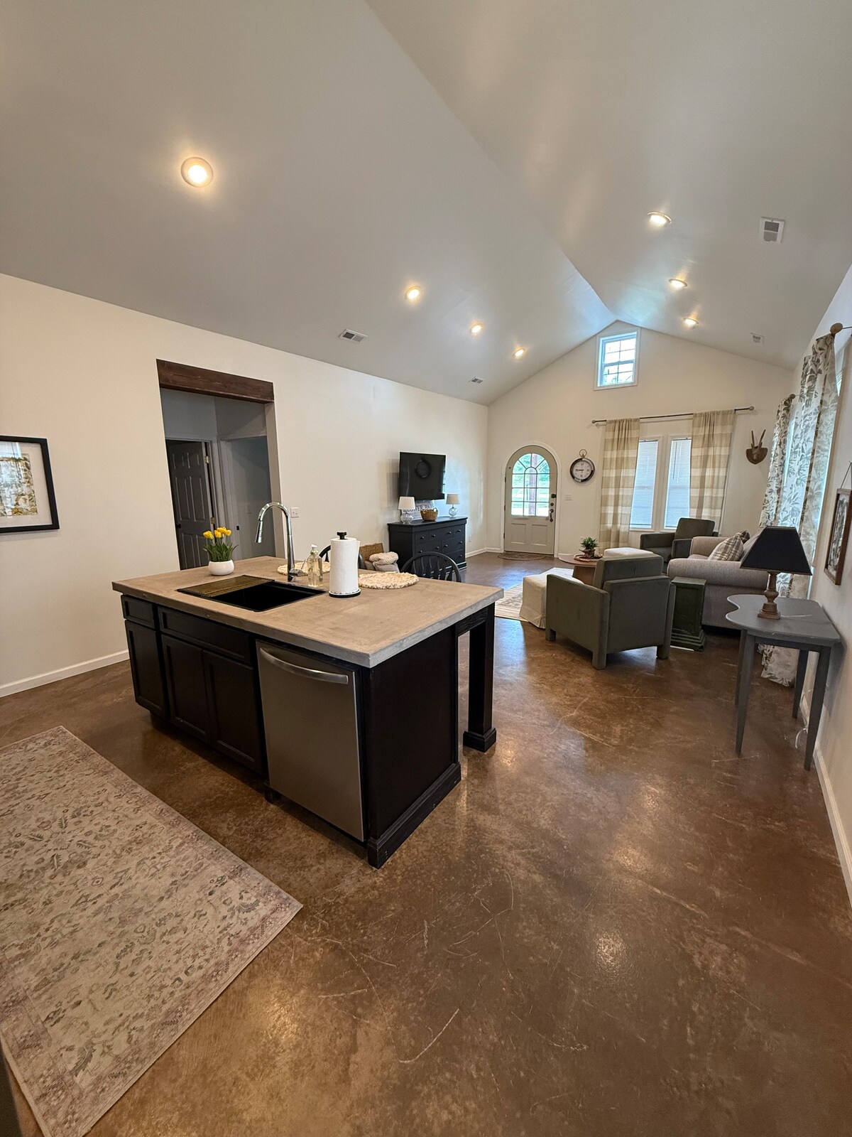 One bedroom cabin loaded with amenities! Private location in a 12 acre field with wildlife to watch and also conveniently located a few blocks from Main Street. NO EXTRA FEES ADDED/no household chores! Free parking, plenty for boats and atv’s also No amenities left out-laundry facilities, all cooking supplies, stocked coffee bar, high speed internet, Netflix, plush king bed, rainfall shower head and more. Please note: a silicone heat pad is provided for all irons in the bathroom.