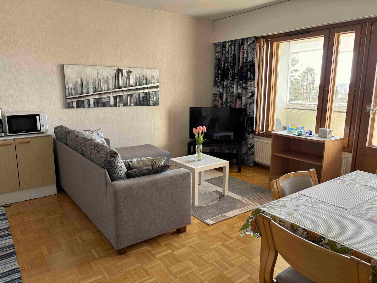 我們的新四人公寓坐落在Koli市中心。 附近有大自然令人驚嘆的休閒機會:科利國家公園、滑雪度假村和眾多徒步道。 商店距離約600公尺。 公寓有一套可供四人使用的全套碗盤。 臥室有兩張牀,客廳有一張沙發。 公寓有自己的桑拿房和露臺,可供放鬆身心。 我們的公寓配有設備與服務,裝潢敏感,將為您的假期帶來休息和寧靜。