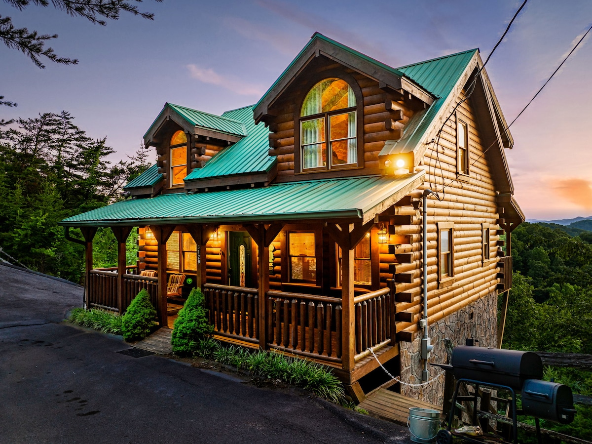❗️ CALLING ALL COUPLES ❗️ ★ The BREATHTAKING MOUNTAIN VIEW From Your Private Patio & Hot Tub ★ Escape to this beautiful log cabin for perfect honeymoon, anniversary, retreat or special get-away! Wake up to morning coffee and panoramic views of mountains, and unwind in your private hot tub at sunset. Enjoy a pool game, and top off your evening with a soak in your heart-shaped jacuzzi! Just minutes from Pigeon Forge attractions!