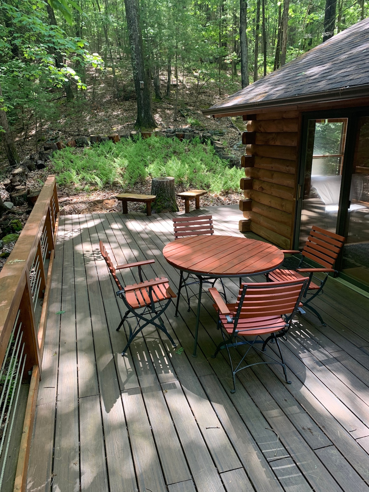 這間現代小木屋坐落在5英畝的寧靜森林中,周圍有山月桂樹,配備各項設備,讓您放鬆身心。距離納羅斯堡市中心和特拉華河僅幾分鐘路程,這裡有很多好玩新鮮事等著您去探索。您也可以待在家中,在寬敞的私人露臺上享用美食、探索房源、觀鳥,或在三溫暖中讓您的煩惱消失。
