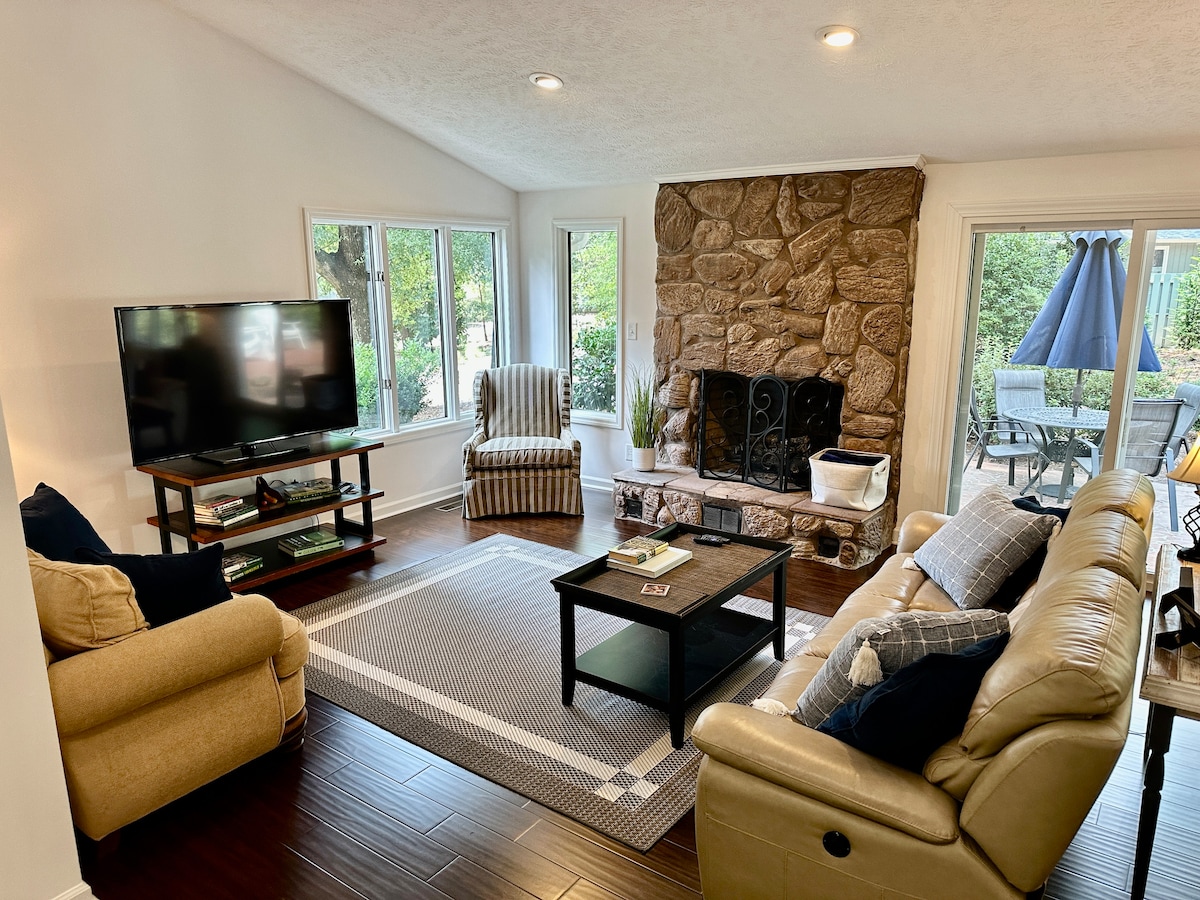 在適合家庭入住的Village Acres社區享受您的Pinehurst住宿。 該地區被綠道行人和單車徑環繞。 這棟房子距離Pinehurst市中心、Camelot Park和Rassie Wicker Park不到2英裏,距離Pinehurst的許多美妙高爾夫球場都只有很短的車程。 它最近已重新裝修,家具齊全,我們不斷努力升級和改善空間,讓你住得舒適!