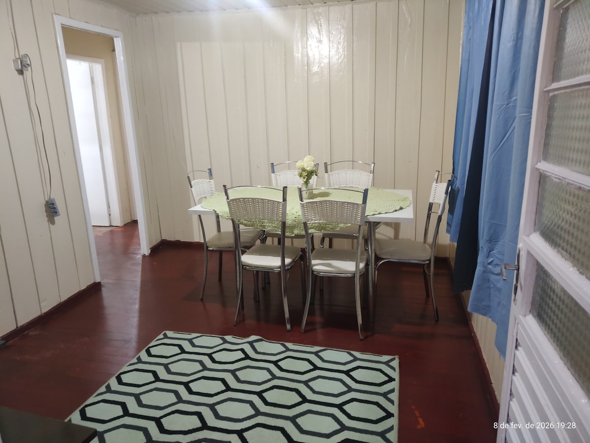 房屋上層位於封閉且安全的地面上,全部裝飾。1 間臥室、1 間浴室、1 個車位。定制家具。臥室配有雙人衣櫃、1張QUEEN床和冷暖空調。通風和照明非常好。所有窗戶和陽臺門都有遮光。陽臺配有燒烤設備。沙發可容納1名成人或2名兒童。(預訂時通知) ,客廳有1張額外的單人床墊。 提供廚房用具、毛巾和床單。