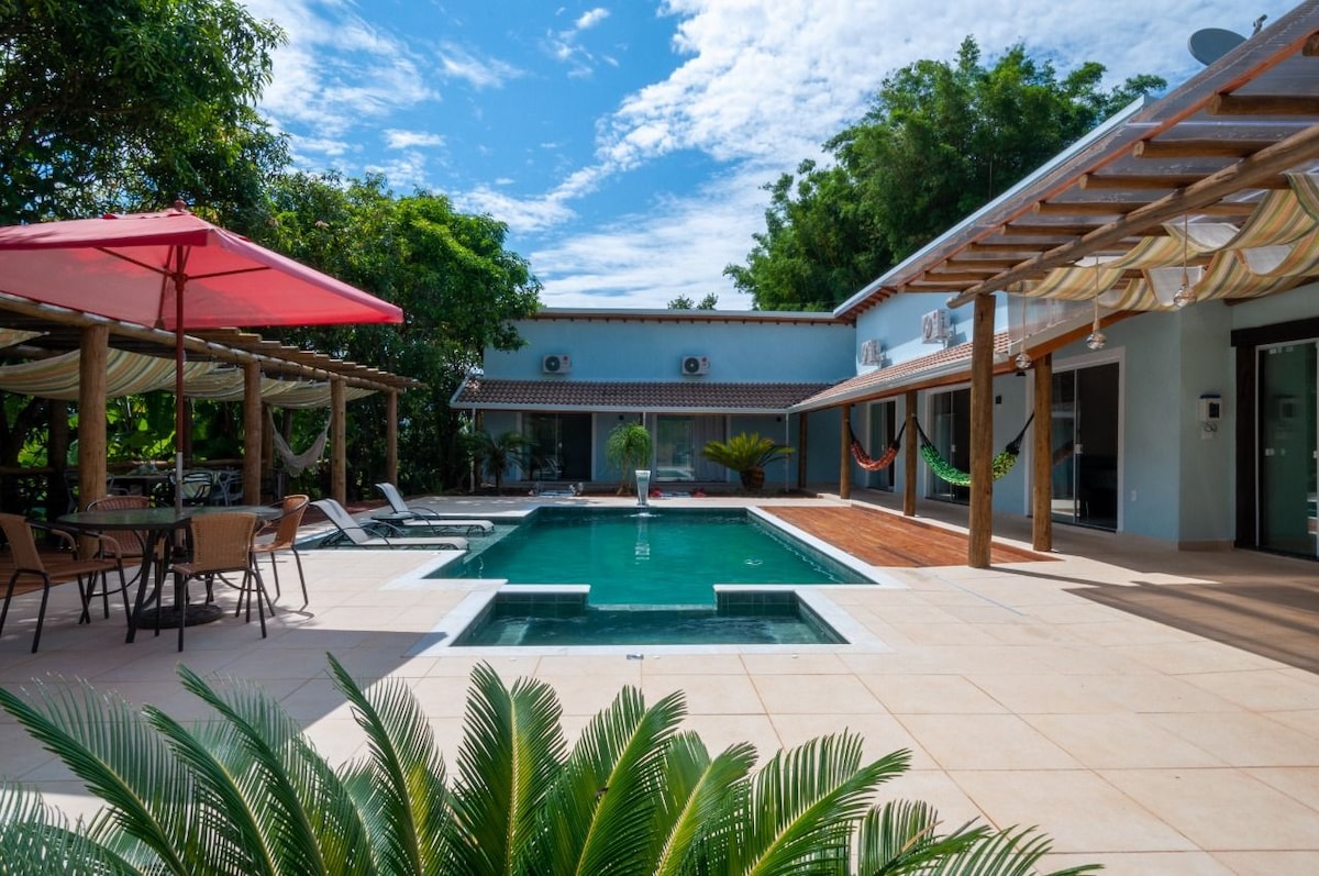 Estância Jaguari為您和您的家人或朋友提供安全的空間,私密、舒適、時尚,並與大自然完全融合。 有6間套房,配有冷氣、智能電視和迷你吧。 設備齊全的美食區域,配有爐子、兩臺冰箱、微波爐、咖啡機、燒烤等。 智慧電視,與泳池區整合了放大聲音。 超出您預期的空間。 現在有沙灘網球場!