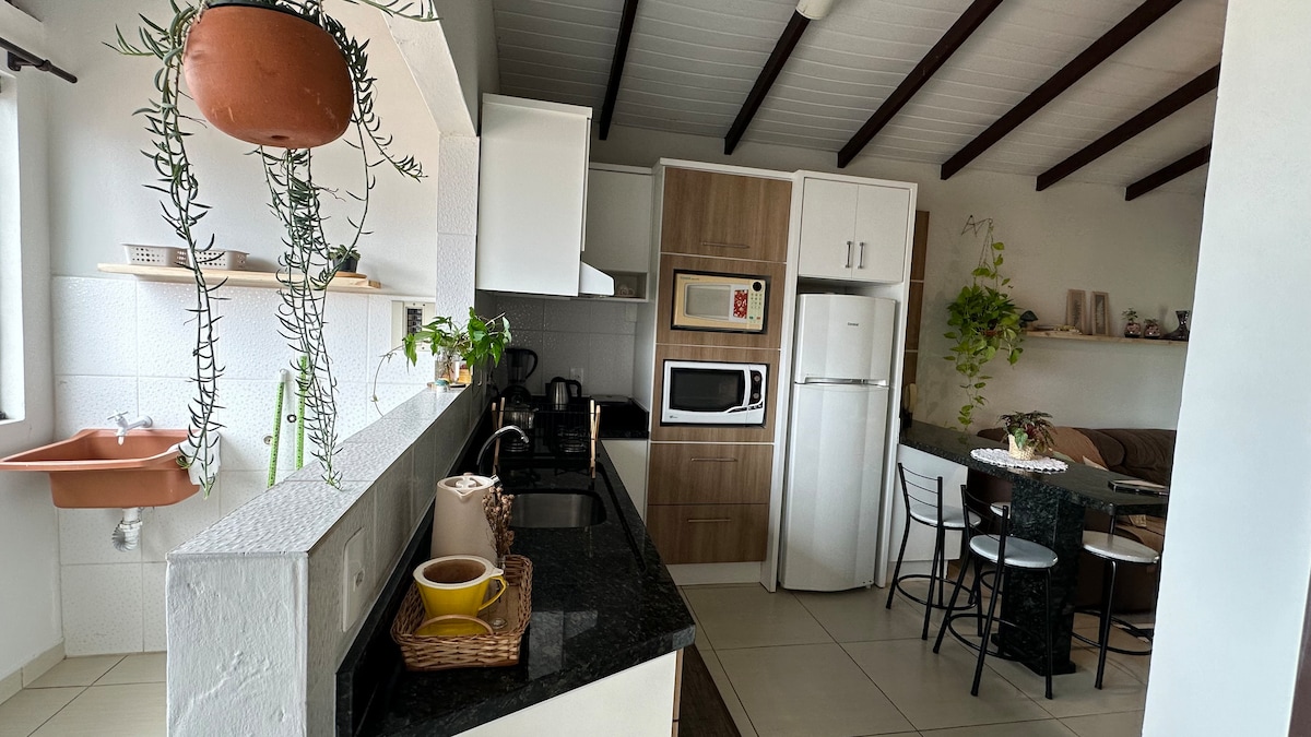Super charming and romantic, ideal for couples. Located on a hill, with total nature around. Near Joaquina beach 15 minutes on foot, and 10 minutes from the center of Lagoa da Conceição. IDEAL FOR ADVENTURERS. It has fast WI-FI, full kitchen with basic items, bed linen, towels. It has a mini market and restaurants nearby 10, 15 minutes walk. IDEAL FOR ADVENTUREIROS. It has Good Wifi, TV, full kitchen with basic items, linen, towels.