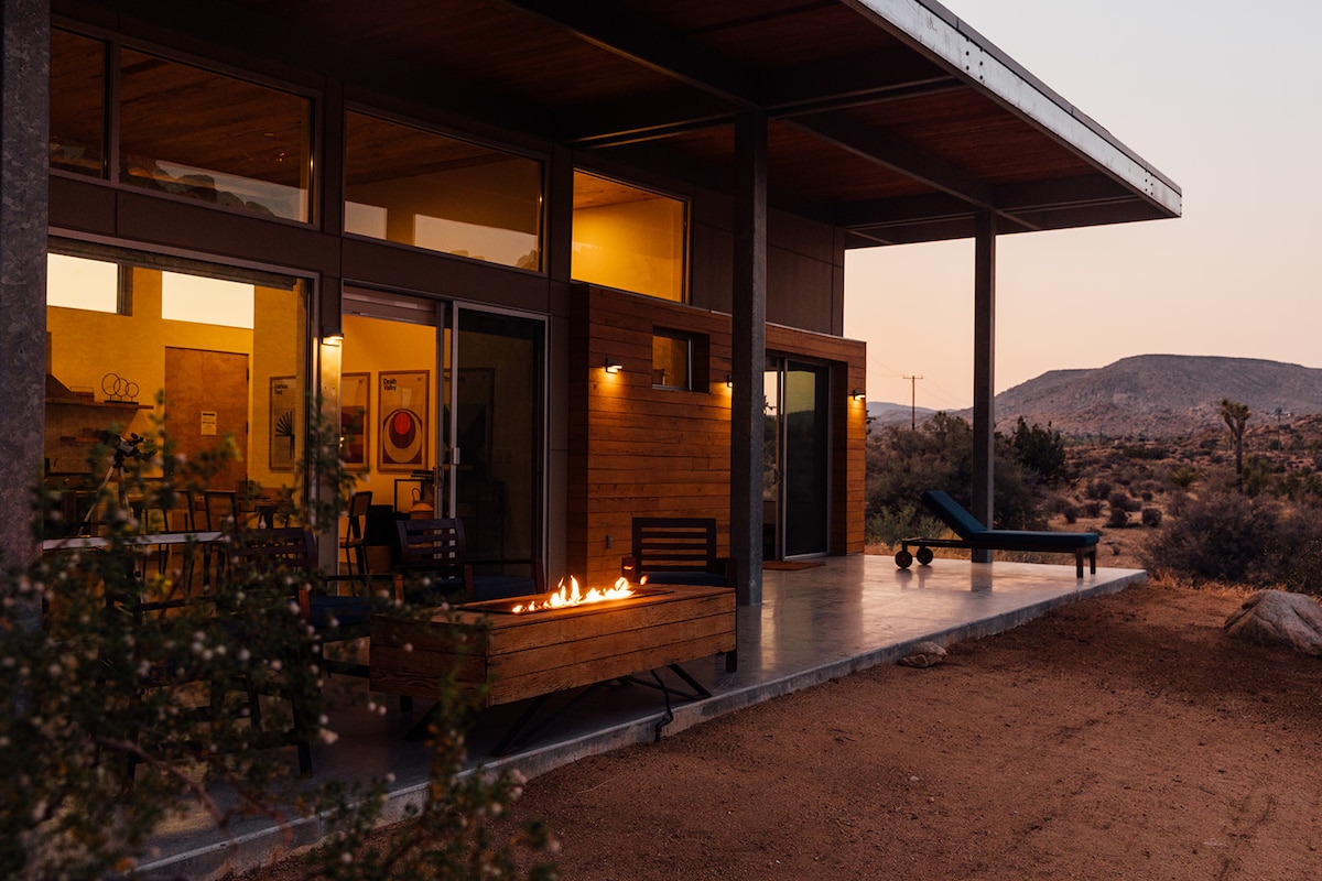 Sage Moon By The Cohost Company --現代斯堪的納維亞家園。白天像約書亞樹一樣綠色,夜晚像星空一樣黑色。 與親密的朋友一起沉浸在舒適的現代室內裝潢中,同時感受周圍沙漠景觀的自然。打開滑動門,前往您的戶外綠洲,包括熱水浴缸、牛仔泳池、地掷球、火坑、戶外用餐等。 在您自己的Pioneertown度假勝地中放鬆身心,度過美好時光