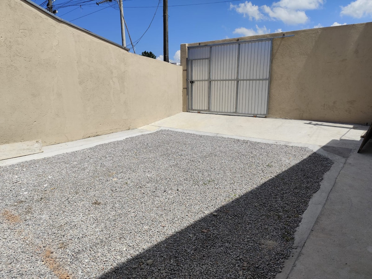 Acomodação modesta e acolhedora, localizada nos fundos do terreno, com entrada independente e separada por uma cerca, não tem garagem. É o espaço ideal para quem busca uma estadia tranquila, prática e com privacidade. Distância Expotrade convention center 1.100 km ( 2 minutos) Parque das Águas 4.500 km (6 minutos) Bosque Municipal 5.600 km (10 minutos) Shopping Jockey Plaza 8 km (15 minutos) Jardim Botânico 12 km (20 minutos) Centro de Curitiba 13 km ( 25 minutos)
