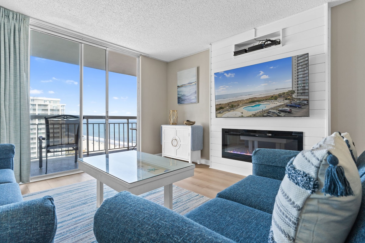 歡迎來到您的海濱家,擁有時尚的室內裝潢!位於更私人的12樓,景觀更完美。 它有2間迷人的臥室,配有2張舒適的加大雙人床,讓家人或親密的朋友可以安穩入睡。 優質毛巾、高端羽絨被以及頂級住宿,讓您住得更加舒適。 專業清潔和消毒,是默特爾市中心最好的公寓之一!步行3分鐘即可抵達令人興奮的木板步道上的一切。
