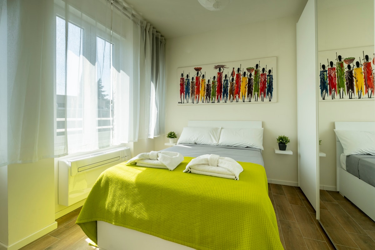 在這片安靜而優雅的綠洲中放鬆身心,恢復活力。最近翻新的寬敞兩房公寓,包括:配有1張雙人床和辦公桌的臥室。客廳配有舒適的法式沙發床,廚房配有烹飪所需的一切,寬敞的浴室配有步入式淋浴間。位於5樓,有一個漂亮的陽臺,在一個安靜的公寓內,距離地鐵1號線僅幾步之遙,只需20分鐘即可抵達米蘭市中心。