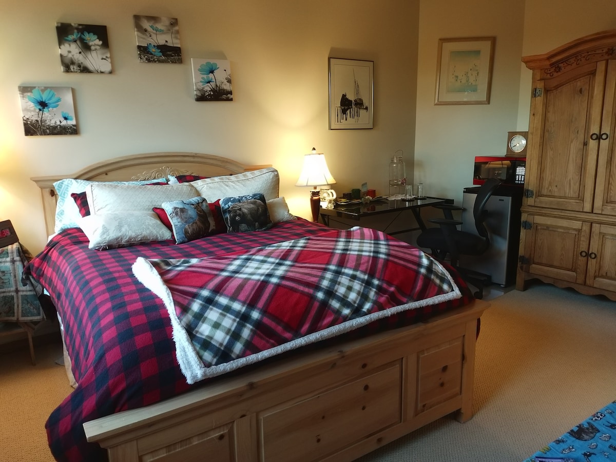 浪漫寬敞的2間臥室歐式山間小木屋,配有現代廚師廚房,包括花崗岩檯面、農舍水槽、洗碗機和加熱石地板。在舒適的加大雙人床或主臥室的私人露臺上放鬆身心,聆聽河流的聲音。欣賞上水晶河谷的神奇山景和河景。 您已正式抵達天堂。安靜、私密且絕對華麗的房源,配有Starlink高速WiFi。