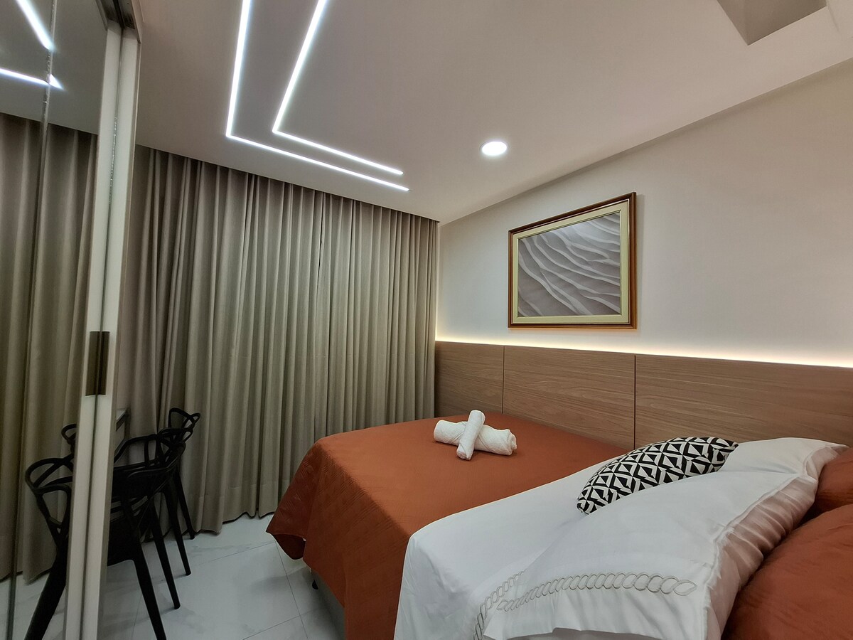 客廳配有廚房和舒適的獨立房間,配有智慧電視和空調。 廚房配有爐具、冰箱、微波爐、空氣炸鍋、攪拌機、全套餐具。1個車庫和24小時禮賓服務。 -吹風機 -熨鬥和熨衣板。 -房間內有沙發床。 -薩爾瓦多會議中心- 1公裏。(最佳位置) -餐廳、Churrascaria、Pizzaria、麵包店、漢堡王、藥店、Baiana de Acarajé、購物-少於100米。