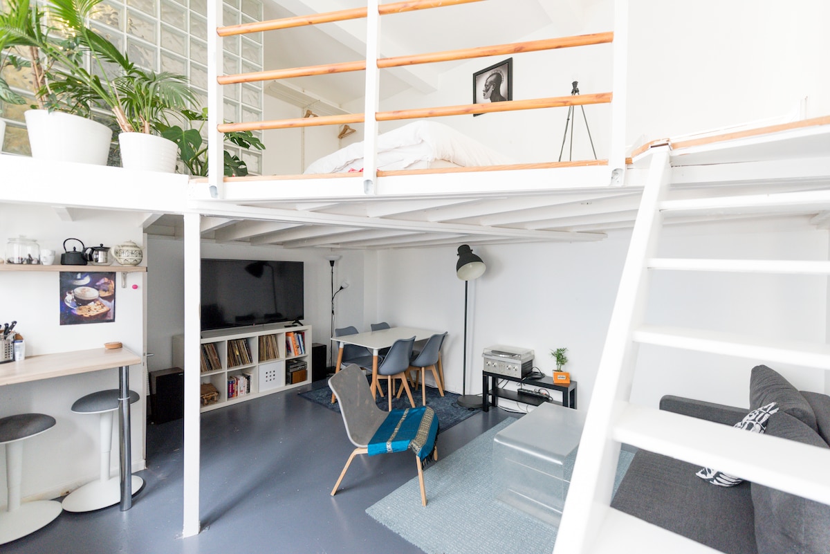 這間迷你閣樓在以前的鑰匙圈和鬆木工廠中完全重新裝修過。 它位於安靜的庭院後面,因為它的遮篷,整天都可以享受美麗的燈光。 在您住宿期間,我將隨時為您提供協助。 如果不在,我的妹妹和房東搭檔可以幫助您。 這個街區靠近聖馬丁運河(Canal Saint-Martin)、共和國廣場(Place de la République)和瑪黑區(Le Marais) ,到處都是餐廳、時尚商店和夜生活,靠近地鐵線路,讓您可以探索這座城市。 步行3分鐘即可抵達共和國地鐵站及其許多線路,可前往巴黎各地。