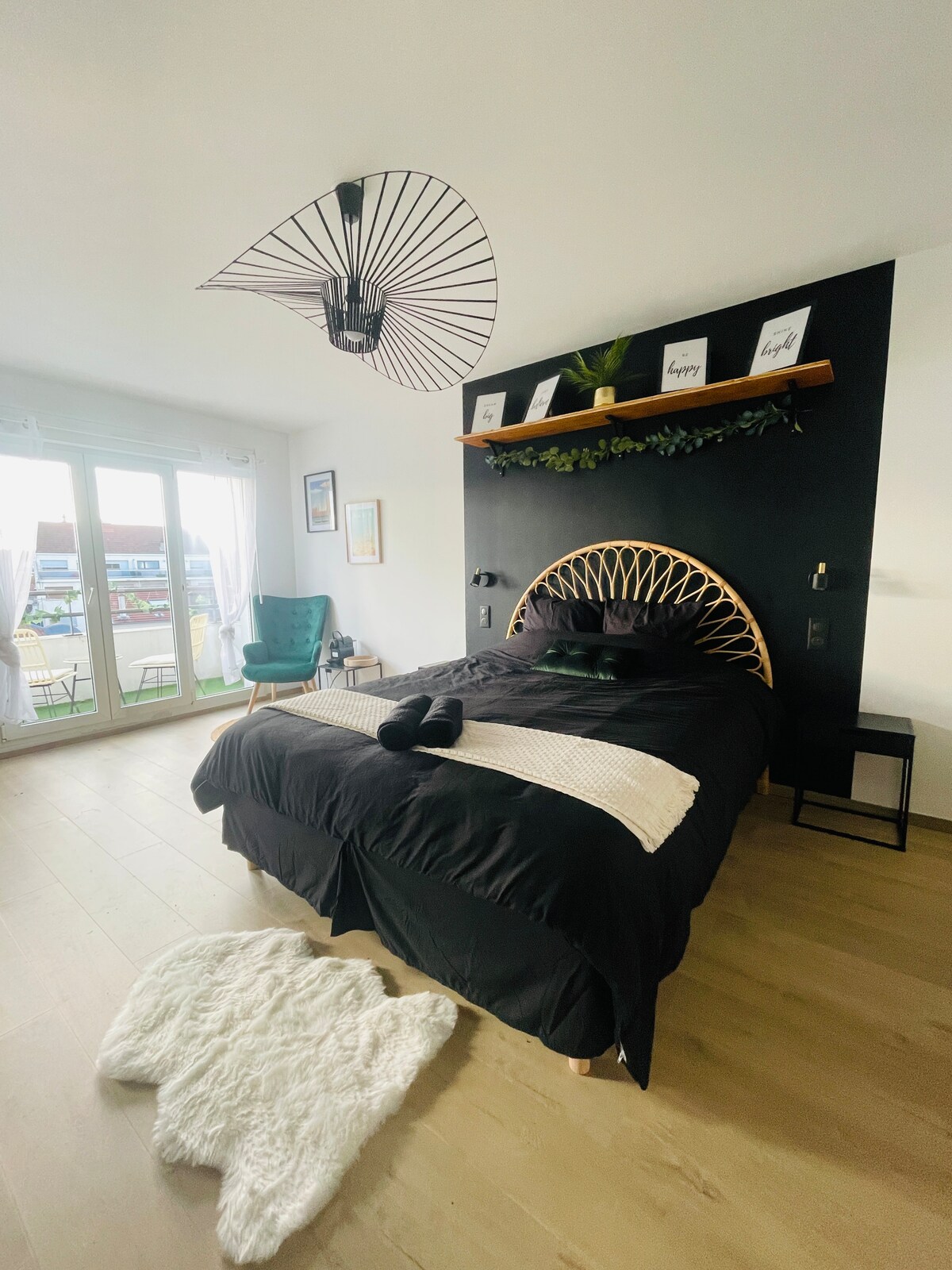 這間公寓展現出獨特的風格。 高級公寓,在奢華的環境中享受放鬆和私密時刻。 客廳與廚房相通,配備大型投影機和家庭劇院,讓您在放鬆的夜晚完全沉浸其中。 寬敞的房間,配有舒適的雙人床(160x200)。 豪華浴室,配有意大利淋浴間,包括 3 人按摩浴缸和 3/4 人桑拿房,可直接通往臥室。