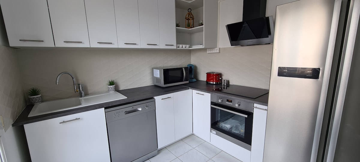 整套房源 - 110 平方公尺的 5 間公寓,50 平方公尺的連續陽臺,可俯瞰城市全景,全面翻新,位於火車站中心,位於住宅的 13 樓和頂樓。明亮、乾淨、舒適的床上用品和舒適、現代的裝飾。位於市中心,一切都近在咫尺:史坦尼斯拉斯廣場 (Place Stanislas)、商店、交通、會議中心。期待很快見到您! (注意:長期租賃後長時間沒有評論)。