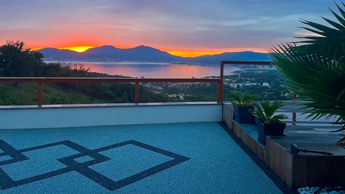 全新別墅,設備齊全,位於一個樹木繁茂且安全的物業內。 寬敞的住宿空間(120 平方公尺)。 從木製露台可俯瞰阿雅克肖灣、阿戈斯塔海灘和桑吉內里群島的壯麗景色,並可直接進入溫水泳池。 靠近各式商店、海灘、水上活動中心和 GIGA GOLF 高爾夫球場。 距離機場 15 分鐘,距離港口和阿雅克肖市中心 30 分鐘。 可前往科西嘉島內陸的村莊。 非常適合家庭入住。