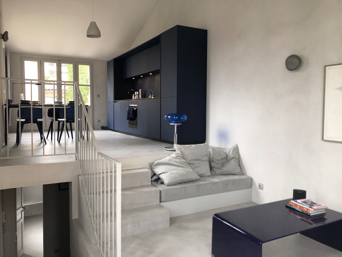 這間充滿時尚工業魅力的閣樓寬敞明亮,在卡朗格大門可欣賞到非凡的海景。 安靜,您將享受現場的所有設施:私人停車場、商店、巴士站和電動單車 距離海灘和熱鬧非凡的La Pointe Rouge區域500米,那裏有酒吧和餐廳。 行程包括:卡蘭奎斯(Calanques)的遠足、海灘、潛水、 在Pastré農村騎單車,參觀馬賽和舊港口(距離海上穿梭巴士700米)。