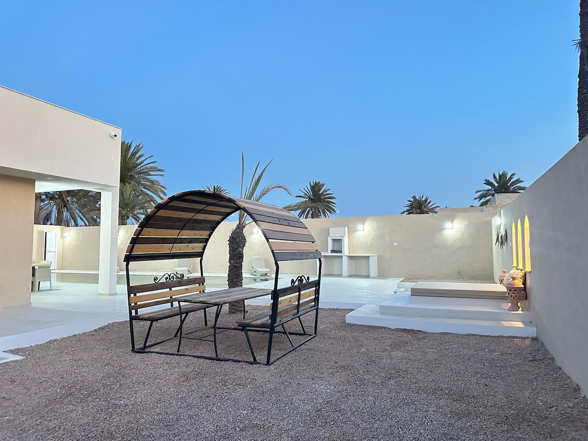入⛱️住我們的豪華別墅,探索傑爾巴島的絕對奢華,距離海灘只有幾分鐘的步行路程 別墅非常適合與家人或朋友一起度假,有3間寬敞的套房、舒適的客廳、設備齊全的廚房,可欣賞私人泳池景觀,非常安全,還有一個可欣賞海景的露臺。 我們可以安排送餐、早餐 加熱按摩浴缸(需額外付費)