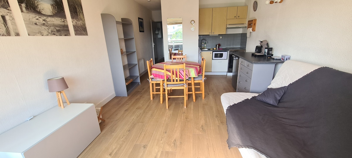 這間 30 平方公尺的住所經過全面翻新,功能齊全,並設有有蓋露台,是情侶、家庭或朋友愉快入住的舒適巢穴。 抵達後,請將車輛停放在住宅區的安全停車場。 靠近海灘(聖托查 (Santocha)、普雷旺 (Prévent) 和皮斯特 (La Piste) 衝浪點)、港口、自行車道、餐廳和商店,讓您的住宿更加愜意。 免費提供床單、毛巾和WiFi。