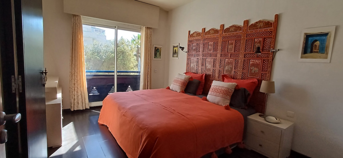 這間美麗的新公寓是索維拉喧囂中的寧靜泡沫。 可供5人和1名嬰兒入住,客廳配有一張沙發牀,最多可容納6人。 地理位置理想,距離海灘5秒,步行15分鐘即可抵達正宗的麥地那,寬敞的230平方公尺,安靜,裝潢精美,品味和奢華。 它有一個大露臺,配有私人泳池,氛圍獨特,還有一個私人地下停車場。 我們的房東搭檔Nezha會以專業的態度迎接您。