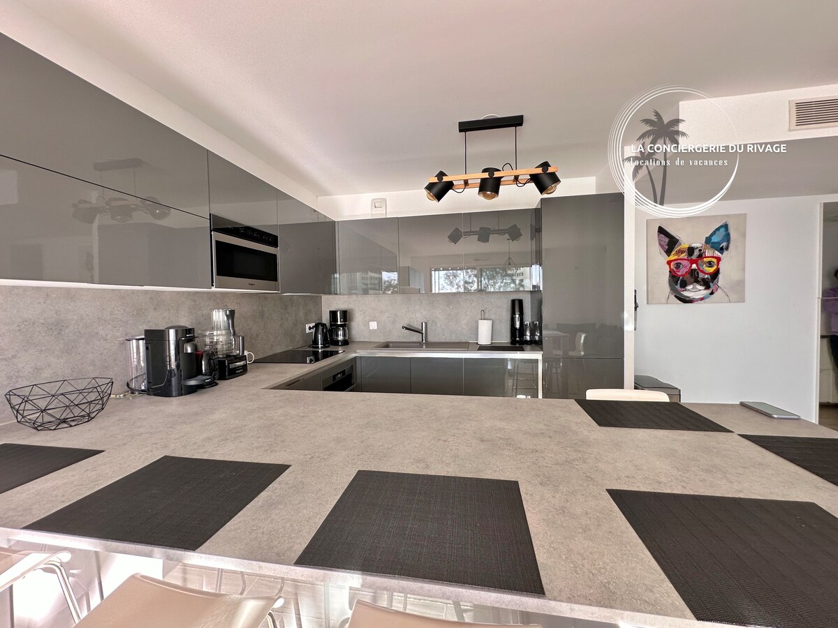 「L 'Horizon」公寓,由La Conciergerie du Rivage管理,提供82平方公尺的起居區域,包括3間臥室、寬敞的陰涼露臺和日光浴室。 坐落在迷人的Salins區中心的全新高端「Rivage」住宅中,享有壯觀的維護泳池和現代設施。 這間明亮舒適的公寓距離海灘50公尺。 開車探索我們所在地區的中心位置。
