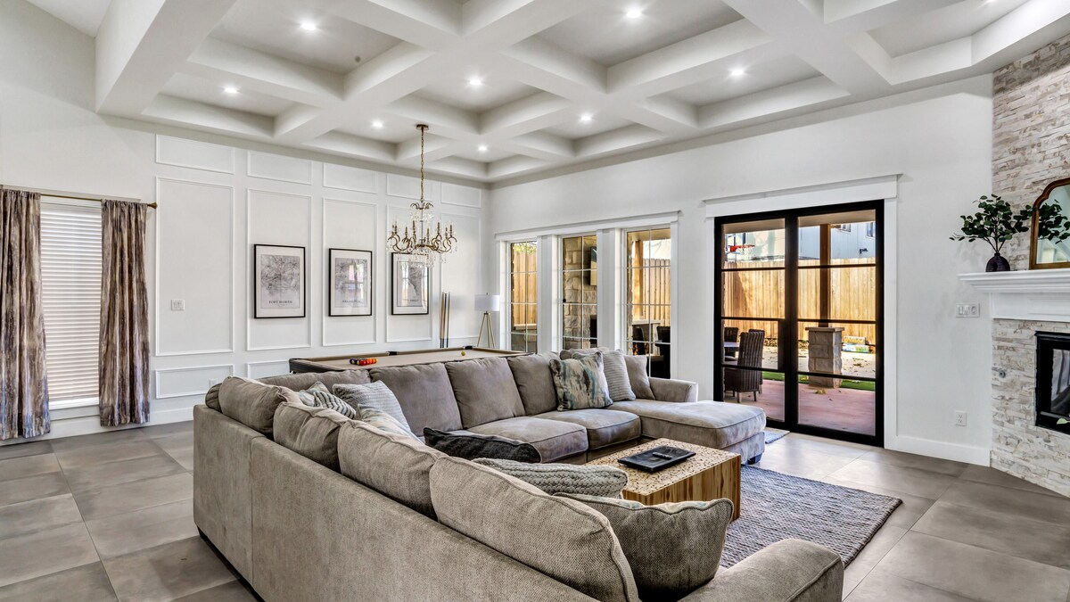 🔸 10 min walk to AT&T Stadium, Globe Life Field, Choctaw Stadium, Arlington Convention Center, Medal of Honor Museum, Texas Live & Esport Stadium 🔸 5 min to UT Arlington, Six Flags & Hurricane Harbor 🔸 15 min to DFW & Love Field airports 🔸 20 min to TCU, SMU, Stockyards AMENITIES 🔹 Pool table 🔹 Game room 🔹 Stocked kitchen 🔹 Basketball 🔹 Arcade games 🔹 Skee ball 🔹 Cornhole 🔹 Outdoor TV & fireplace 🔹 Outdoor kitchen 🔹 BBQ/flat grill/boiler 🔹 500 mbps wifi 🔹 Baby-friendly items
