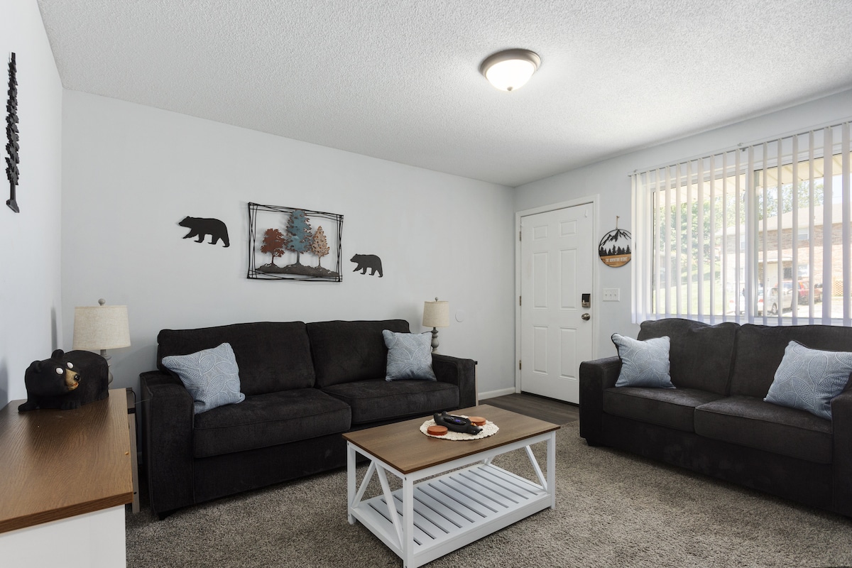 Enjoy a convenient 2BR in Riverside, just minutes from Downtown Kansas City. In-unit washer/dryer and easy, stair-free access make this a great choice for families, longer stays, or guests with luggage. You’ll have free parking, fast WiFi, easy self check-in, and a fully equipped kitchen. Quick highway access makes getting around simple, while the quiet setting offers a comfortable place to relax after a long day..