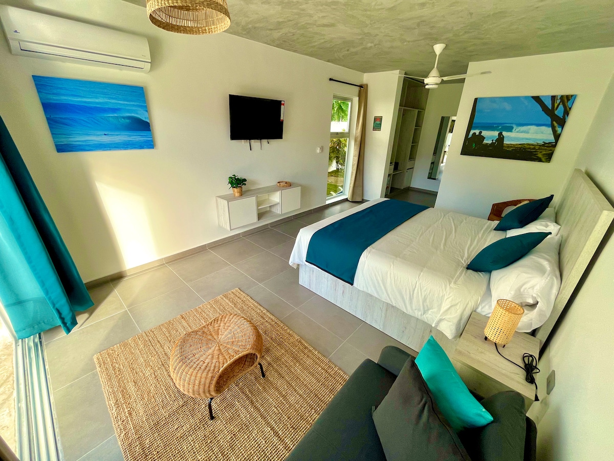 在多明尼加共和國北岸Sosúa和Cabarete之間的精品民宿Garden by the Sea的Peaceful Garden Queen Room放鬆身心,充電。 房間寬敞舒適,配有大床和沙發床,最多可供4位旅人入住。 享受冷氣、Wi-Fi、私人浴室,並可使用泳池和熱帶花園。 非常適合尋求靜謐精品住宿的情侶、家庭或朋友,靠近Sosúa和Cabarete海灘。