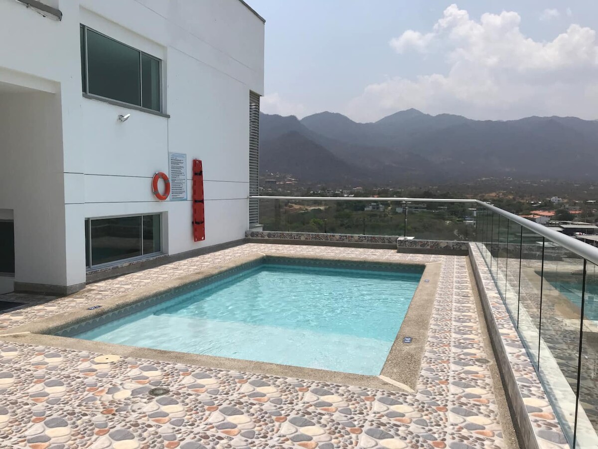 靠近Zazue購物中心、Olimpica和Carulla的公寓。 距離大海僅幾步之遙,可直接通往。 公寓配有雙人牀、沙發牀、椅子牀、電視、WIFI、洗衣機、停車場、兩間帶淋浴的浴室。 公共區域包括4個泳池、4個按摩浴缸、1個健身房和1個遊戲室。 非常適合情侶放鬆身心。 每晚價格不包括7歲起每人25,000美元的腕帶費用。