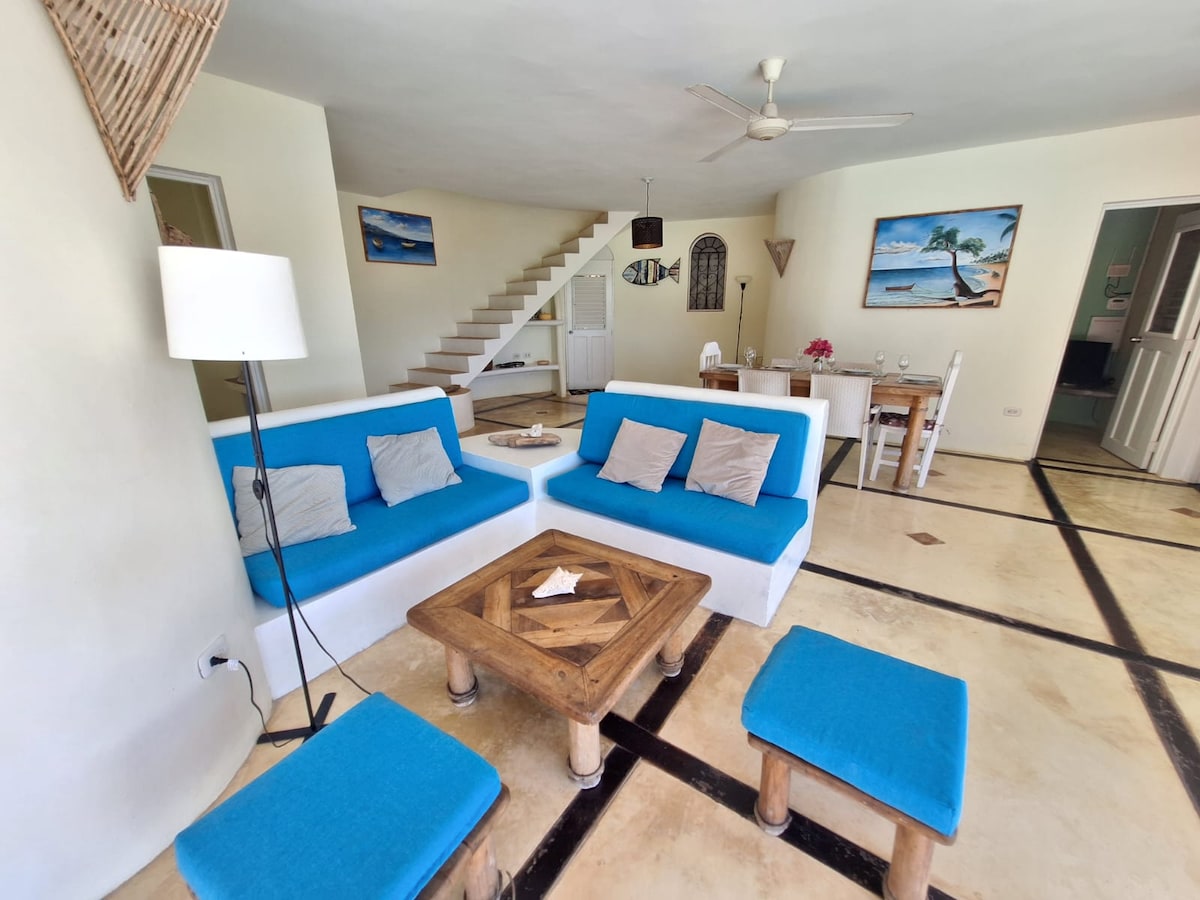 Las Piñas 房源位於海邊一個安靜的住宅區,是 Playa Bonita 一個私人、安全的開發項目的一部分,這是島上最美麗的海灘之一,也是少數可以直接通往大海且無需穿越道路的地方之一。安靜。非常適合有小孩的家庭短期或長期住宿。典型的拉斯特雷納斯鎮(Las Terrenas)開車只要十分鐘,有許多餐廳、小酒館和熱鬧的夜生活。