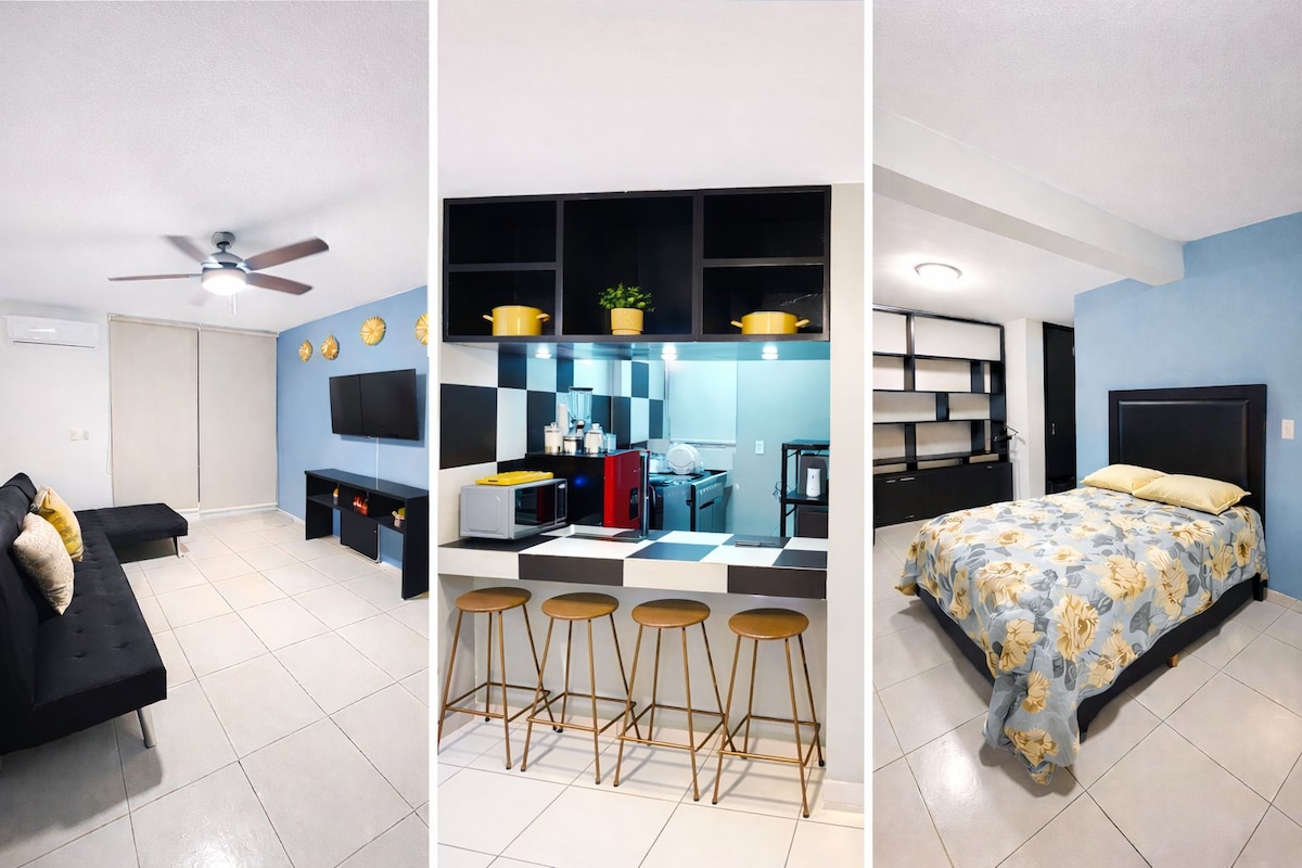 這間寬敞明亮的公寓距離馬薩特蘭大水族館、海灘和馬萊孔(Malecón)僅幾分鐘路程,讓您享受舒適實用的住宿體驗。 公寓設有兩間臥室、設備齊全的廚房、高速Wi-Fi和自動通行的私人現場停車位。 非常適合尋找戰略位置的家庭、情侶或旅客,以輕鬆探索城市並享受其主要景點。