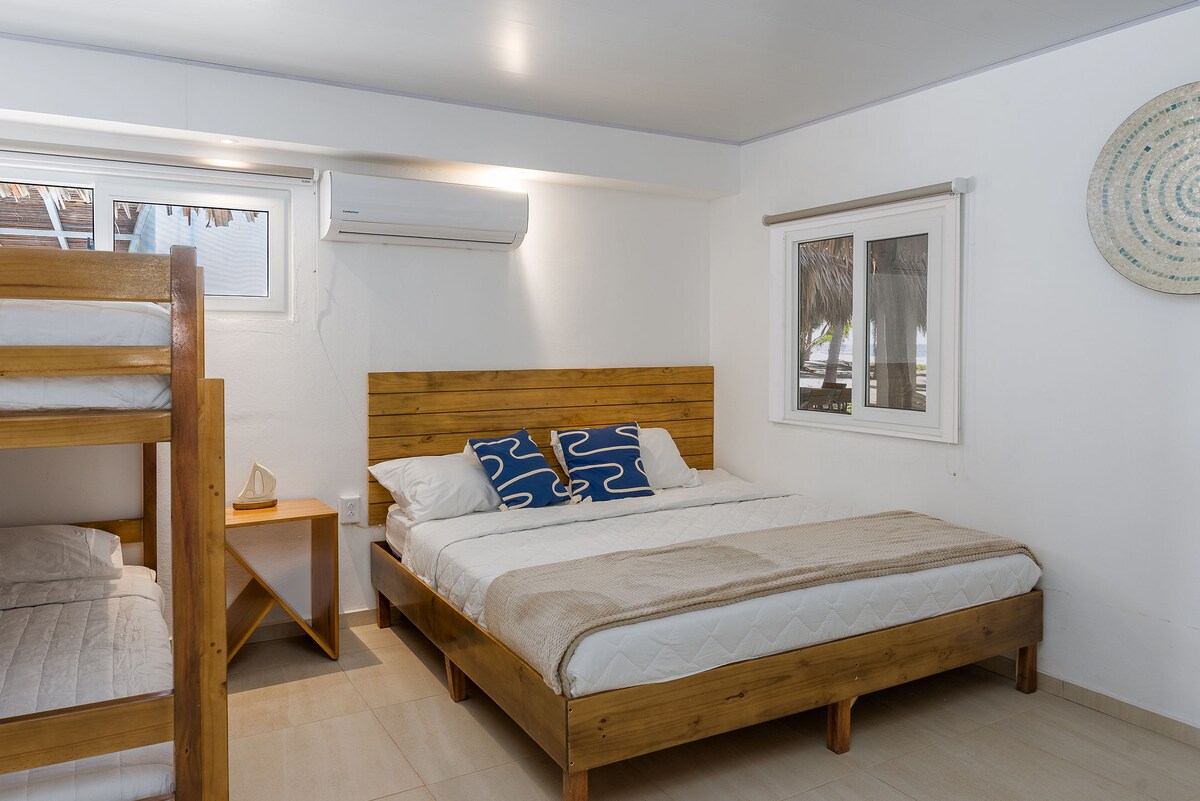 This luxurious private and secluded beach-front paradise hosts 15 guests with 3 large bedrooms and 1 service/staff bedroom, separate from the main house (or up to 20 guests with 6 bedrooms, ASK ME ABOUT IT) Walk from the front door to the quiet, private, and beautiful sandy beach! A large 2 area pool with a bar, a large outdoor area with BBQ, & hammocks. Large guest rooms, each with a bathroom (1 with hot water), AC & ceiling fans, and hotel-quality beds. ALL ON THE FIRST FLOOR! ❤️