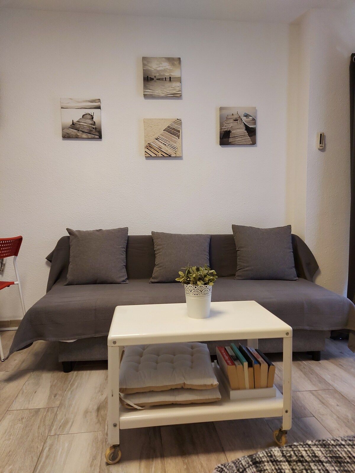 Nice apartment fully renovated in December 2015.Very cozy.Tastefully decorated. It has one bedroom,living room with sofa bed,kitchen, bathroom and a beautiful terrace,very quiet and a three minute walk from the beach and boardwalk La Carihuela. WIFI. TV with 800 international channels in different languages.
