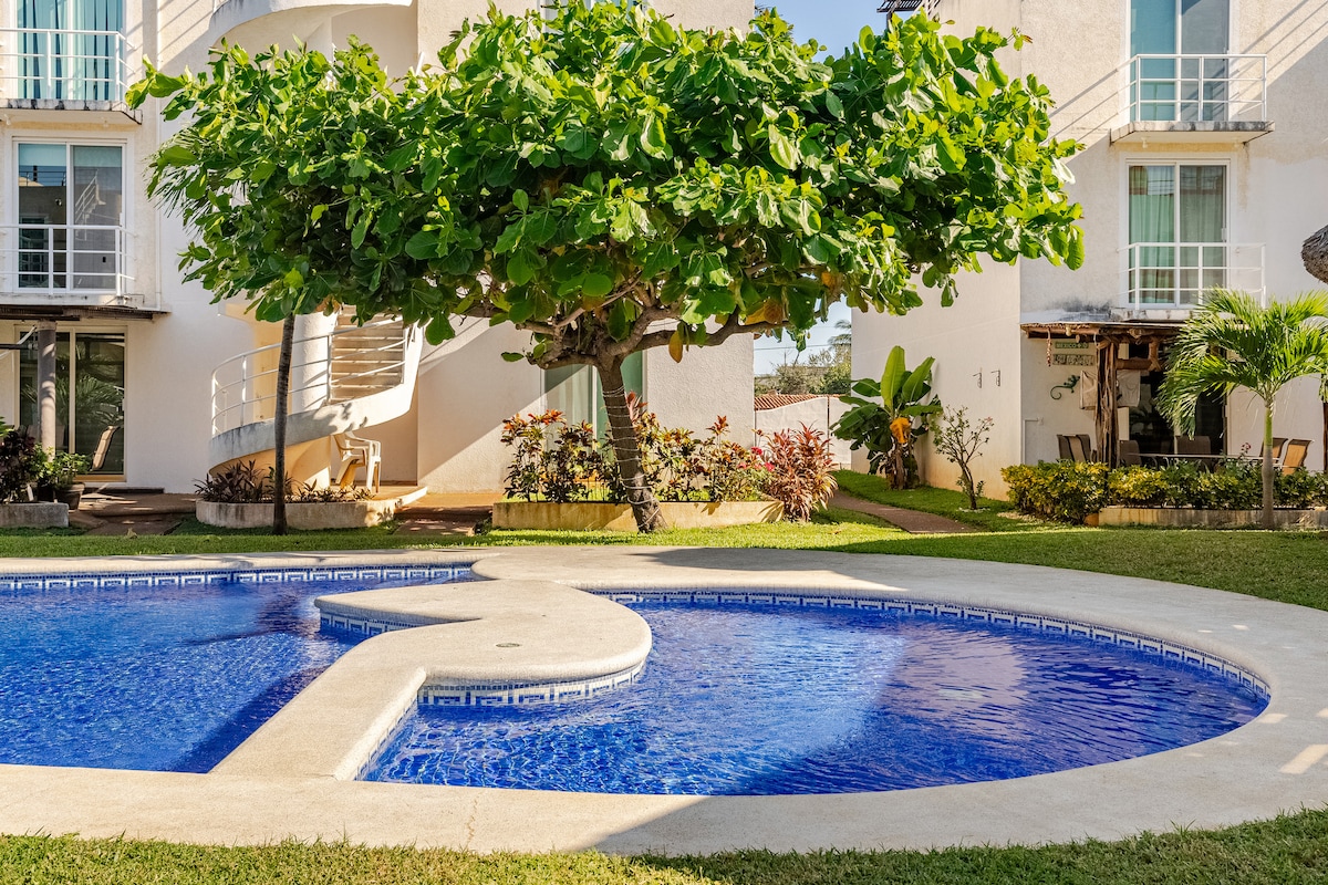 美麗的頂層公寓,美麗的公寓,有2間臥室, 2間浴室,位於豪華公寓內,配有完全私人的按摩浴缸。配有壯觀的泳池,位於阿卡普爾科最乾淨、最美麗的海灘之一,距離Forum Mundo Imperial僅幾步之遙。 歡迎小型寵物入住,雖然寵物不能漫步或在泳池區域,但我們只要求您帶上您的寵物和寵物的配件。 適合情侶或小家庭入住