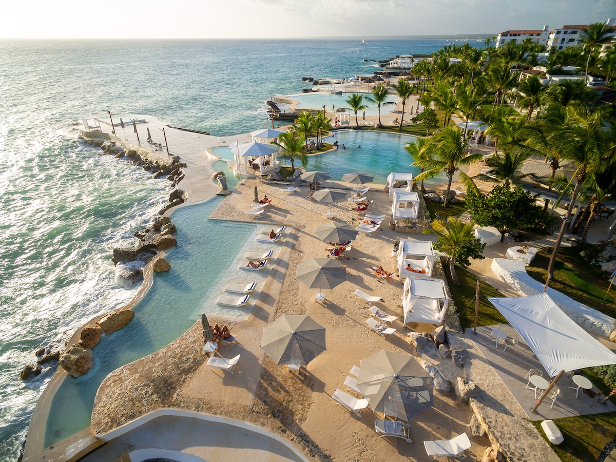 Escape to our exclusive oceanfront community in Dominicus! Perfect for couples or families (up to 2 kids), this Caribbean paradise boasts pristine white sand, turquoise waters, **No sargassum**, and stunning sunsets. Enjoy free access to the private Beach Club with a restaurant and bar, panoramic ocean views, lush tropical gardens, and 3 saltwater pools. Immerse yourself in local charm while experiencing luxury and tranquility. Your dream getaway awaits—book now and start vacationing in style!