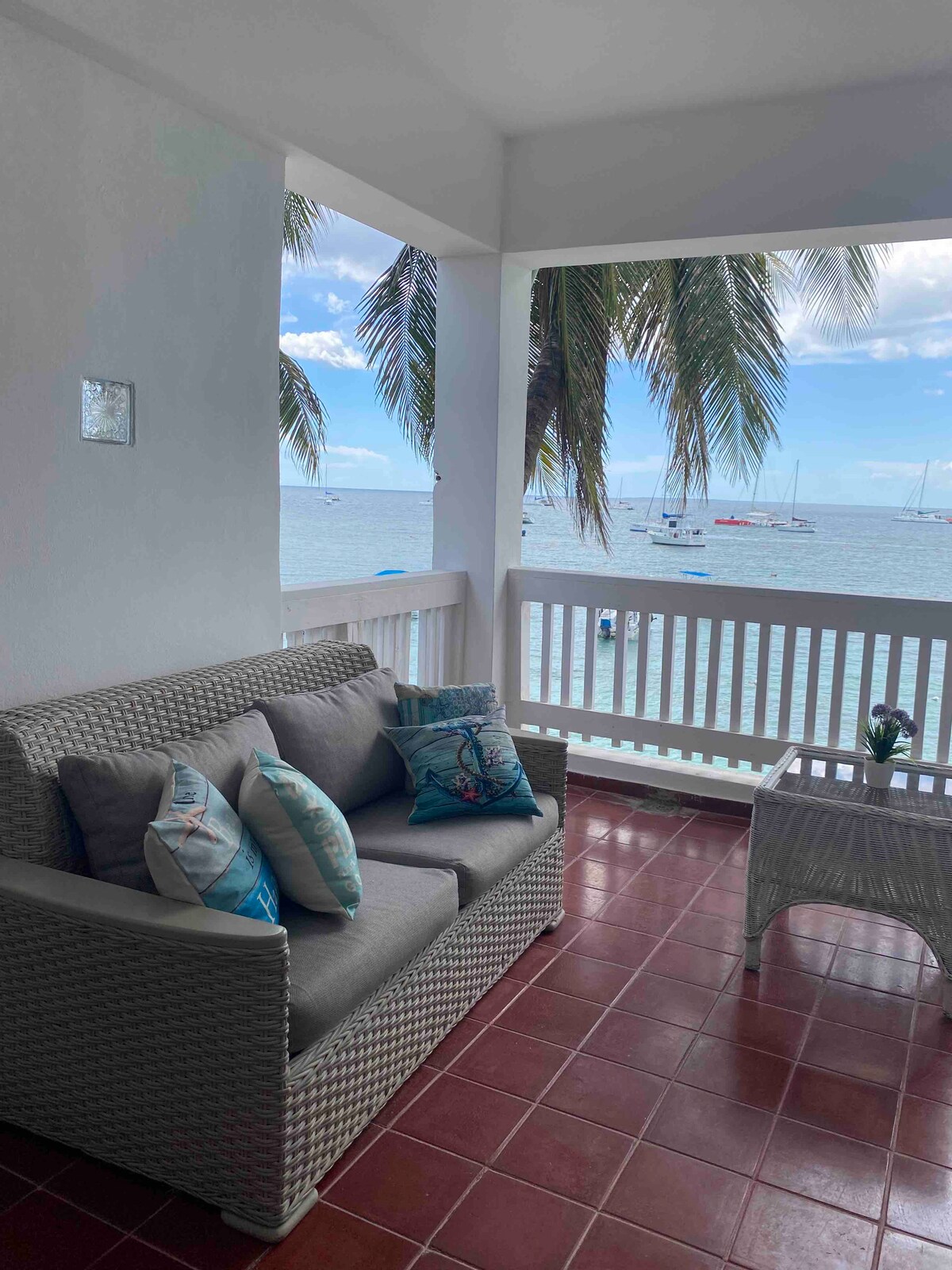 Great beach apartment on the 2nd floor, right in front of the ocean, the best feature is the terrace with the most amazing view of the Caribbean Sea. Recently installed air-condition and new windows in both bedrooms! There are plenty of nice restaurants in Bayahibe with a good choice of food, the restaurant below the apartment, El Patio, has excellent pasta and the best lobster in town. A haven of relaxation, with the most tourist attractions and sports activities in the Dominican Republic!
