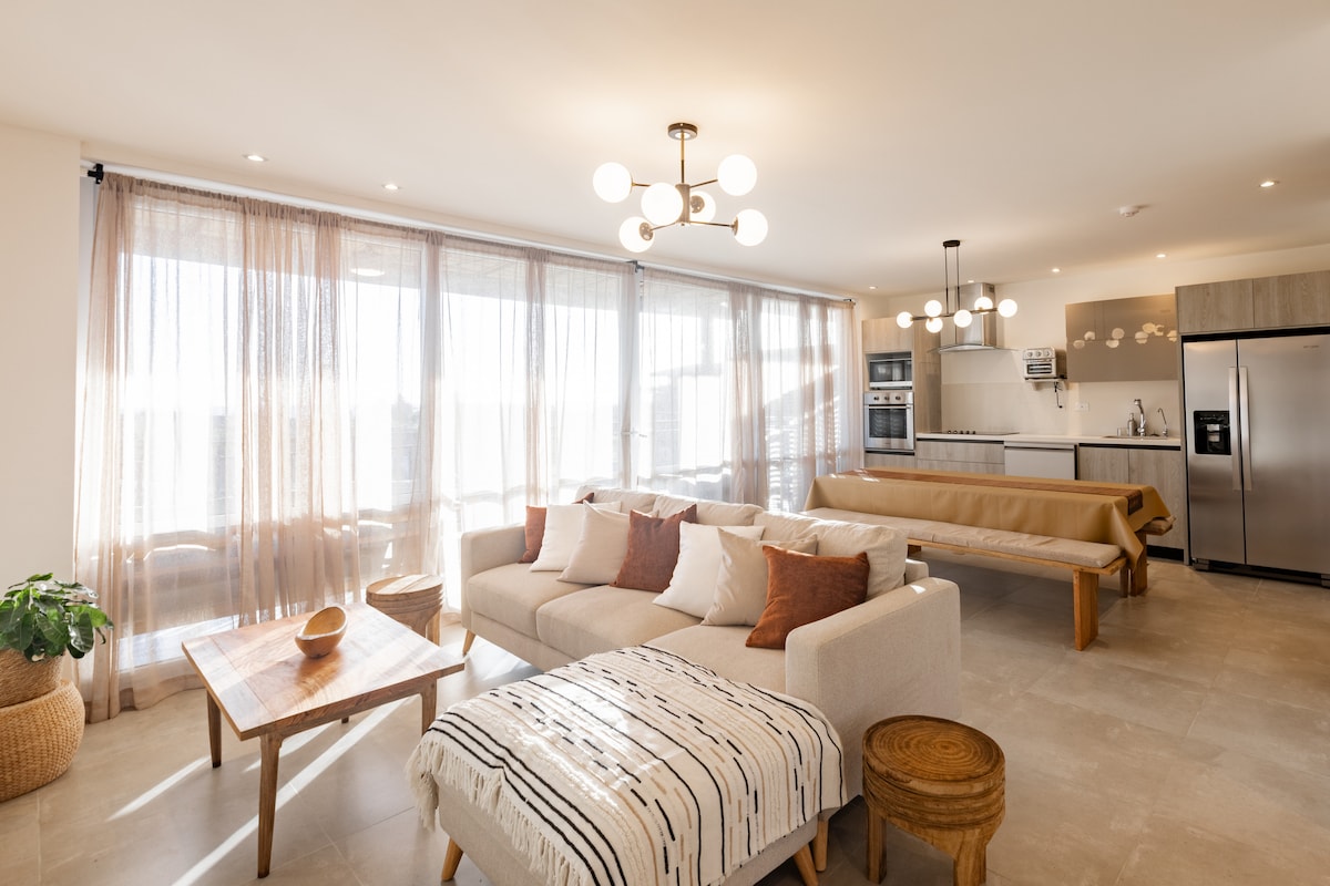 全新2間臥室豪華公寓,設備齊全,組織良好,適合家庭、朋友或甚至僅供您使用。 您只需帶上衣服和良好的能量,我們會處理其餘的事情。 位於最佳位置,位於一切的中心(但仍然非常安靜)。 步行即可抵達海灘(可直接前往)、餐廳、酒吧、商店、超市、衝浪學校、瑜伽和健康中心、騎馬、自動櫃員機和加油站。