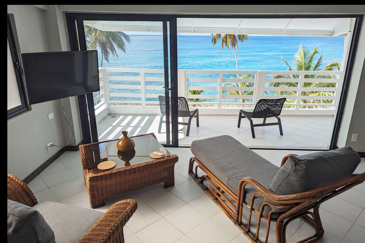 Relájate en esta escapada única y tranquila. Disfruta de hermosos atardeceres junto al mar, mientras escuchas el sonido de las olas. Despierta cada mañana con la hermosa vista al mar, desde tu confortable cama, y siéntete renovado con la energía de la naturaleza. Nuestro apartamento cuenta con una ubicación privilegiada y estratégica, justo frente al mar caribe, y muy cercano a supermercados, restaurantes, bares, y campos de golf de la zona.