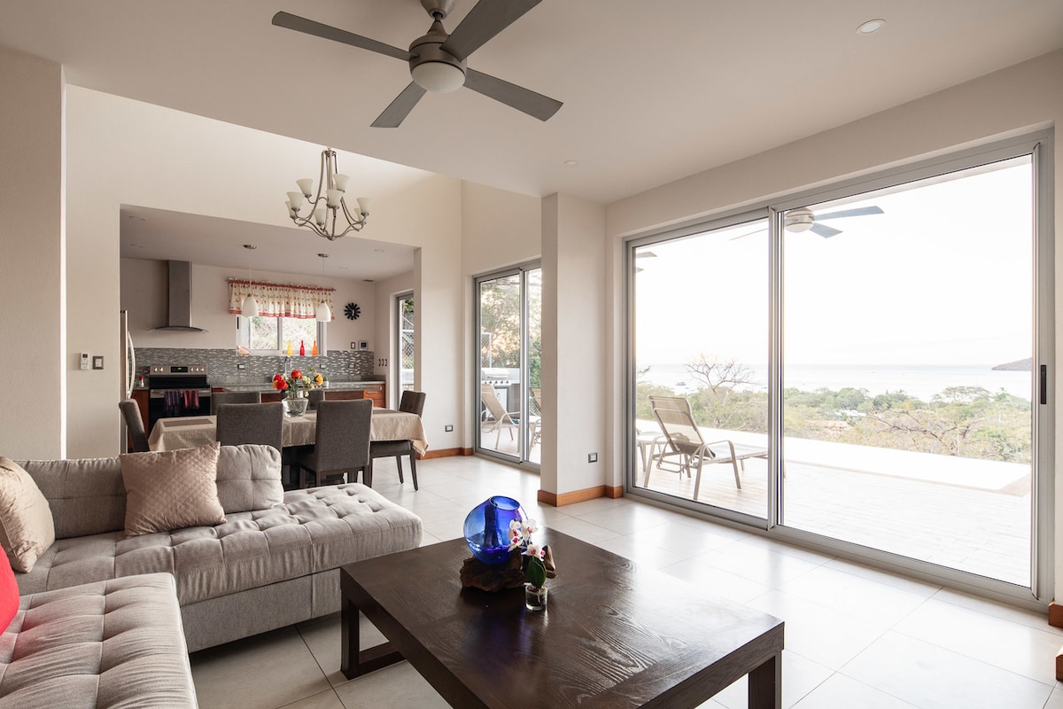 Playas del Coco最好的海景和山景之一! 我們歡迎所有人!非常適合情侶、家庭和遠距工作者入住。 設備齊全的房子,位於有門禁社區內的山頂,步行10分鐘即可抵達海灘。 附近有雜貨店、餐廳和商店。距離利比里亞機場( 20分鐘)車程不遠。每天黃昏和黎明時分都可以欣賞鳥類和猴子的音樂會,欣賞Playas del Coco的壯麗日落景觀。 靠近大自然,但離商品不遠!