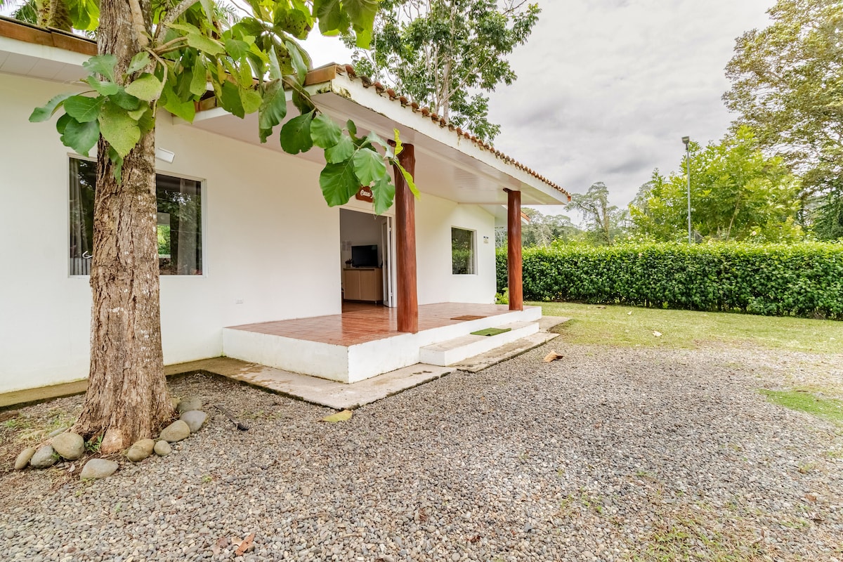在這間寬敞、寧靜的別墅中放鬆身心,非常適合家庭或一群好友入住。享受私人的熱帶環境、開放式廚房和起居區,專為分享特殊時刻而設計。兩間臥室,配有空調、天花板風扇和套房浴室。包括光纖WiFi、現場停車位、共用洗衣區和每日自行車租賃。距離Playa Negra僅500公尺,距離Puerto Viejo市中心僅幾分鐘路程。提供個人化的關懷和量身定制的體驗。