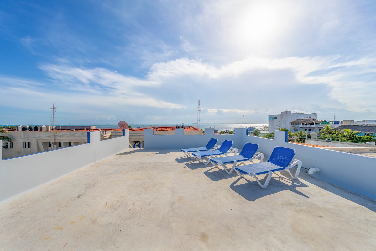 STAY IN COMFORT IN THE HEART OF DOWNTOWN ISLA MUJERES! Choose one of beautifully designed guest rooms here at Hidalgo Boutique Rooms, located in the bustling social hub of the island, with delicious restaurants, fun bars, vibrant nightlife, souvenir shopping as well as the stunning Playa Norte, all just steps from your room. NEW - Starlink Internet Each morning you can enjoy a coffee, or choose from our selection of teas, while you relax and socialise on our beautiful rooftop terrace.