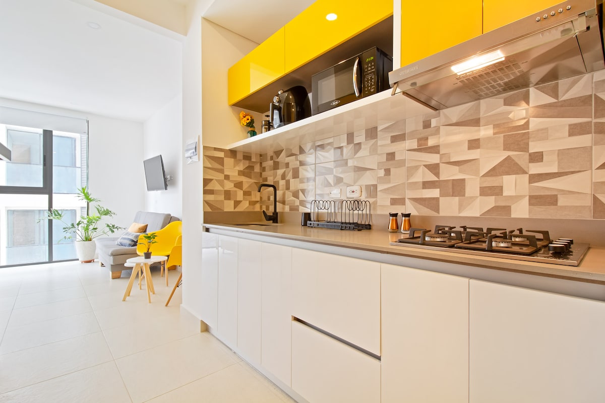🏖️ Apartment with a private 🛁 jacuzzi, terrace with a 🪢 hammock, 🍳 fully equipped kitchen (air fryer, coffee maker, blender), 🏖️ beach kit included and access to 🏊♂️ 3 swimming pools. Just 100 m from the beach and 10 min from the airport ✈️. Includes 🧴 amenities and 🧼 bath and beach towels. Building features 🏋️♀️ gym, 🛒 mini market, 🚗 free parking, 💇♀️ hair salon, Turkish bath and sauna (extra cost). Close to 🛍️ supermarkets and restaurants. IDEAL PARA ESTADÍAS CORTAS Y LARGAS.