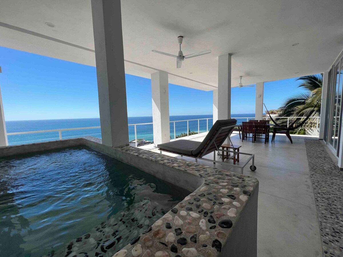 Romantic spacious one bedroom apartment with panoramic ocean views and a private heated pool in the tranquil north end of Sayulita *High speed wifi via Sayulitawifi * Smart TV *Air conditioning and ceiling fans *Kitchen with stove, oven, microwave, blender, coffeemaker and all utensils *Breathtaking panoramic views of the entire bay *King bed, pillowtop mattress *Parking for 1 vehicle *Interior soaking tub and exterior private heated pool *Spacious common area pool and grill *Gym and Yoga