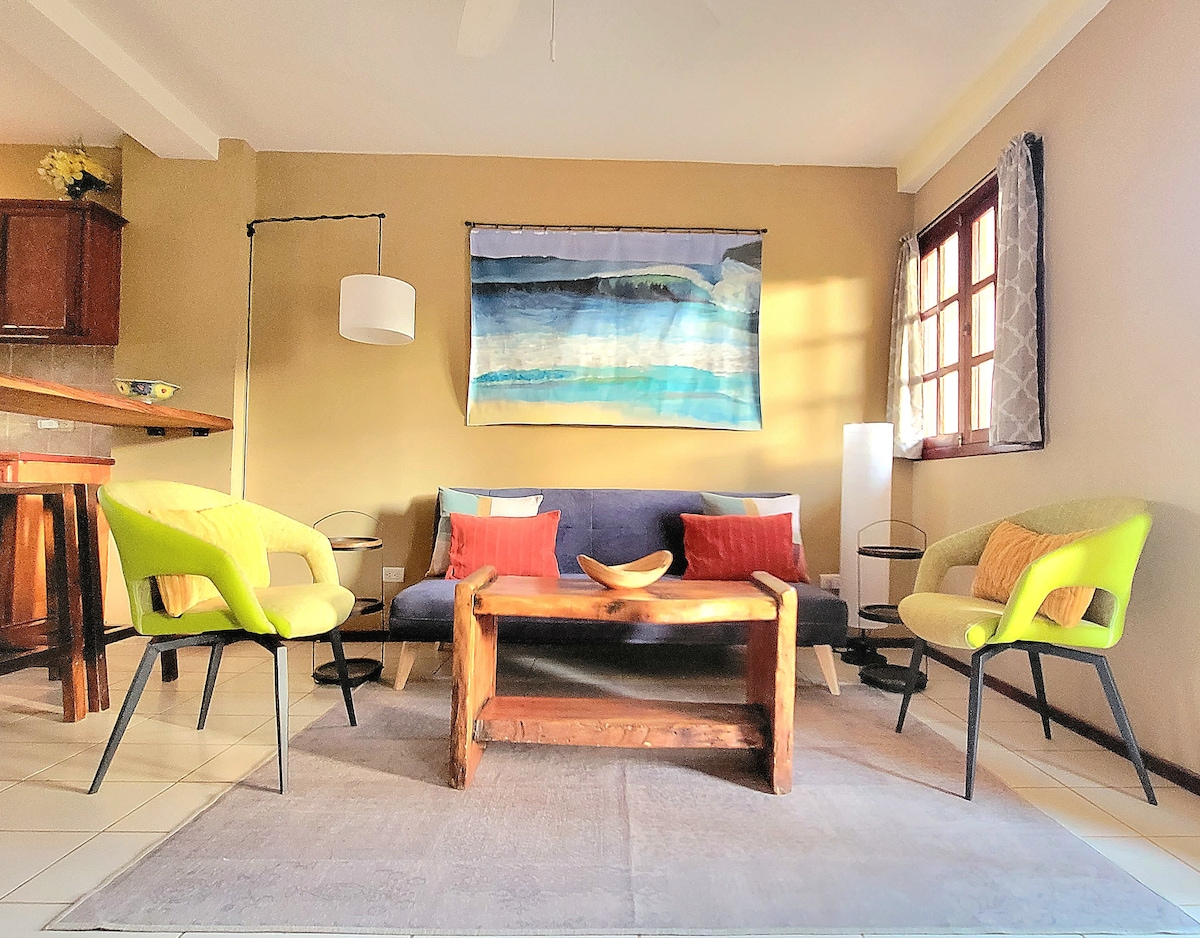 Pura Vida de Gris is a newly renovated two-story upper level condominium offering the modern features of a cool San Francisco loft accented with the warm tropical oasis style that is Tamarindo. The combination of contemporary stained concrete and whitewashed floors, vintage Italian tile and rich golden Guanacaste wood create unimagined luxury at an affordable price.