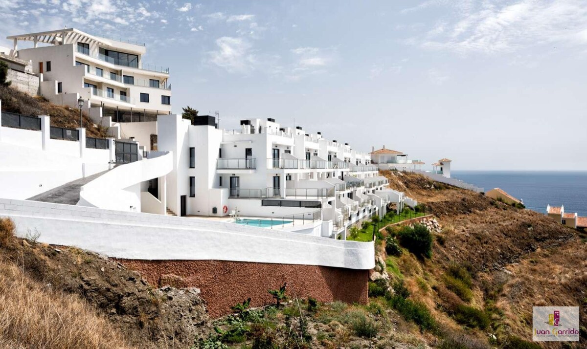 房源位於內爾哈郊區的高地,地理位置優越(Ladera del Mar)。從所有房間都可以看到大海,步行10分鐘即可抵達。 由於地理位置較高,建議您租車。 沿著海邊步行、乘坐巴士( 7分鐘到巴士站)或乘坐計程車也可以到達美麗的中心。 房源有一個美麗的戶外廚房、泳池區域和一個大陽臺,一樓有休息室。你可以在這裡住在外面!
